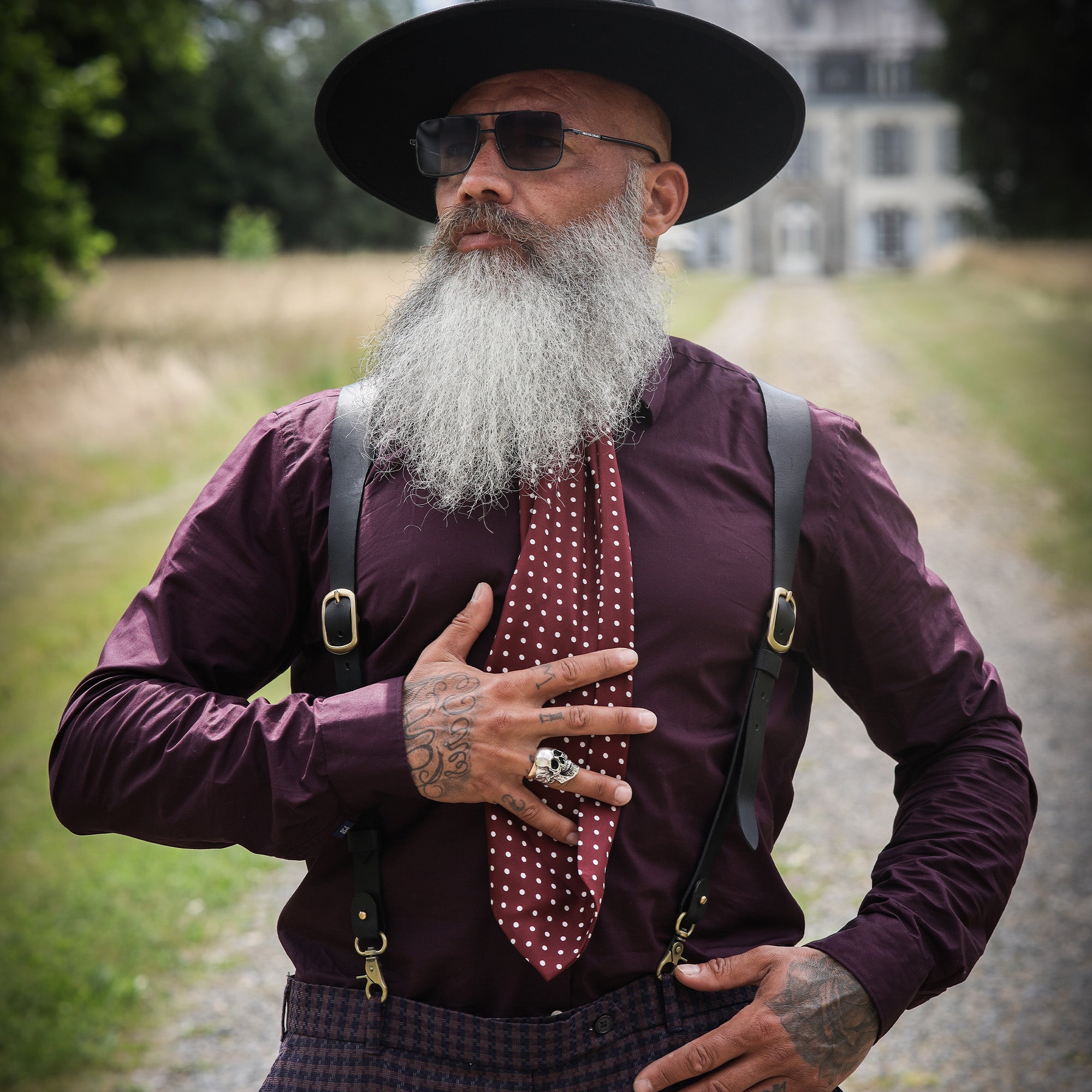 S'inspirant de Hershel dans "The Walking Dead", les bretelles Hershel Flex partagent avec leur homologue Hershel Full Leather le segment de cuir plus large distinctif sur les bretelles avant. Cependant, elles se distinguent par l'ajout d'une sangle arrière élastique pour plus de confort. Ces bretelles sont également dotées de pièces métalliques couleur laiton et de boucles robustes exclusives, ce qui facilite l'ajustement de la taille. Fabriquées en authentique cuir nubuck des États-Unis, elles développent une patine unique et s'assouplissent au fil des utilisations.